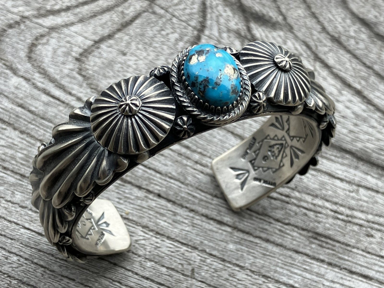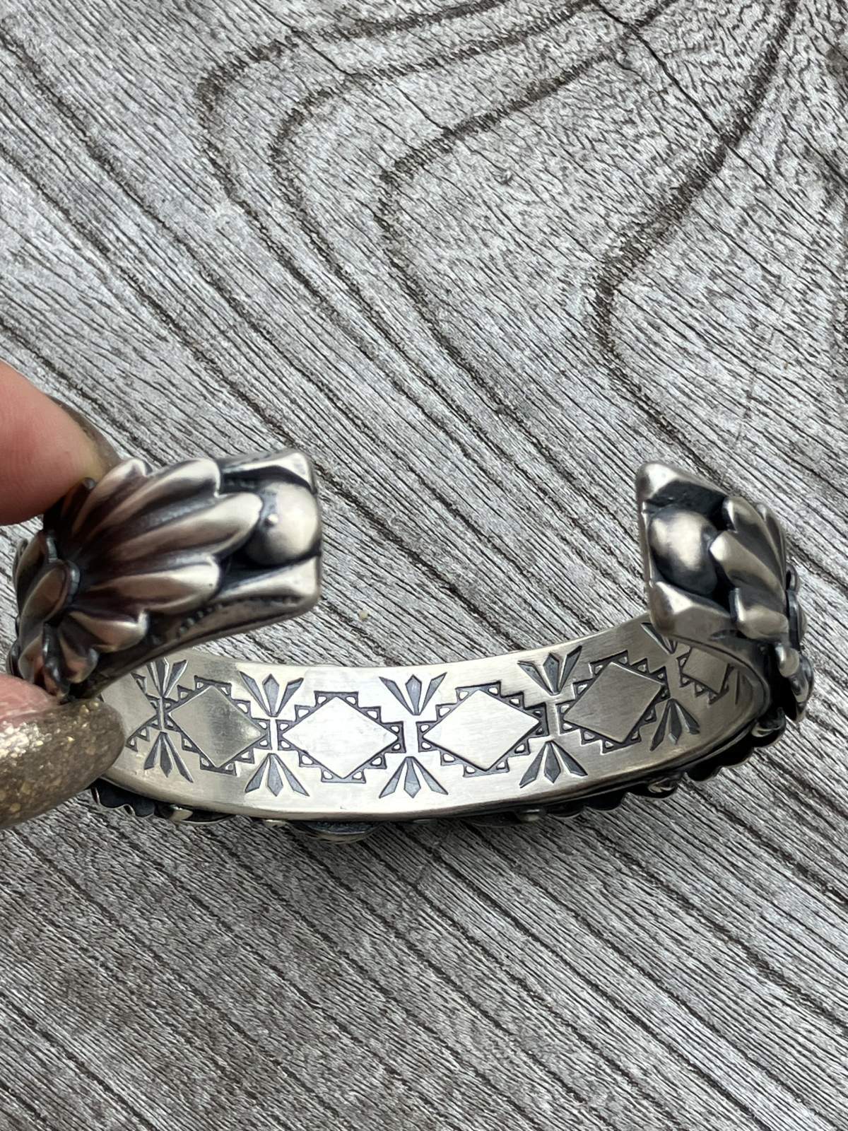 しっかりと打ち込まれたスタンプワークとワイヤーワーク、そしてコンチョのアップリケ、